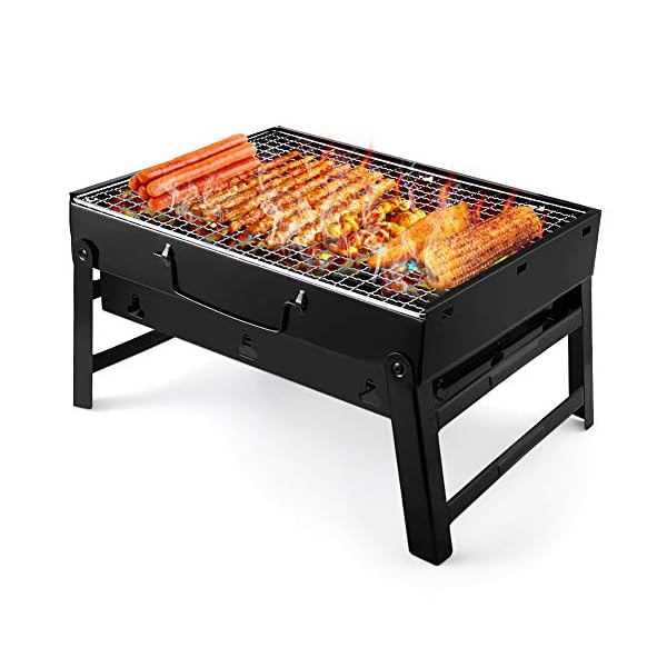 【PORTABLE BBQ GRILL】: The charcoal grill not only has foldable legs, but also is small, weighs only 1.6 Kg, and is especially portable. The folding legs are deployed to support the grill in a triangular mode to make the grill more stable. You can put a small grill in the trunk and garden.